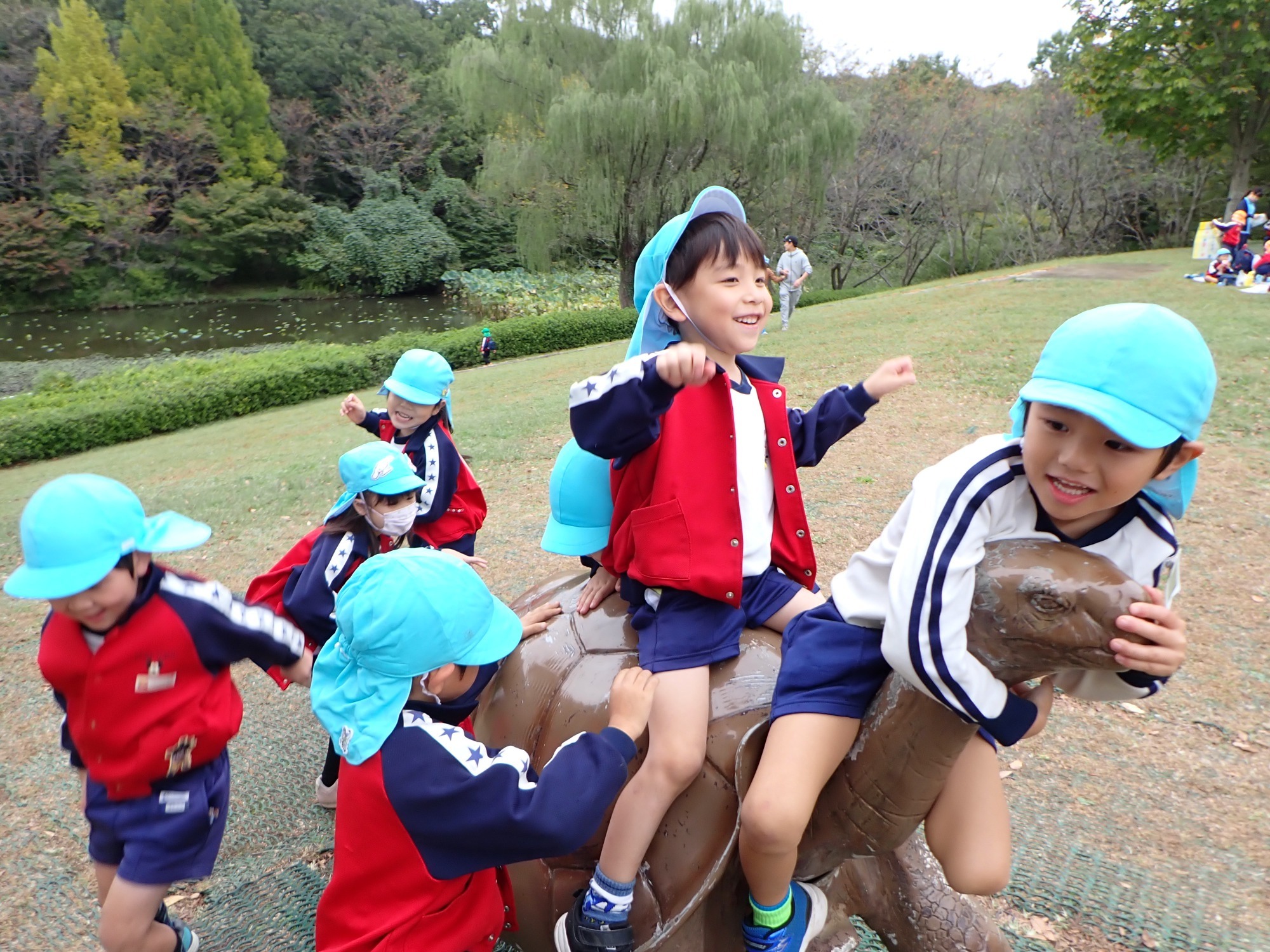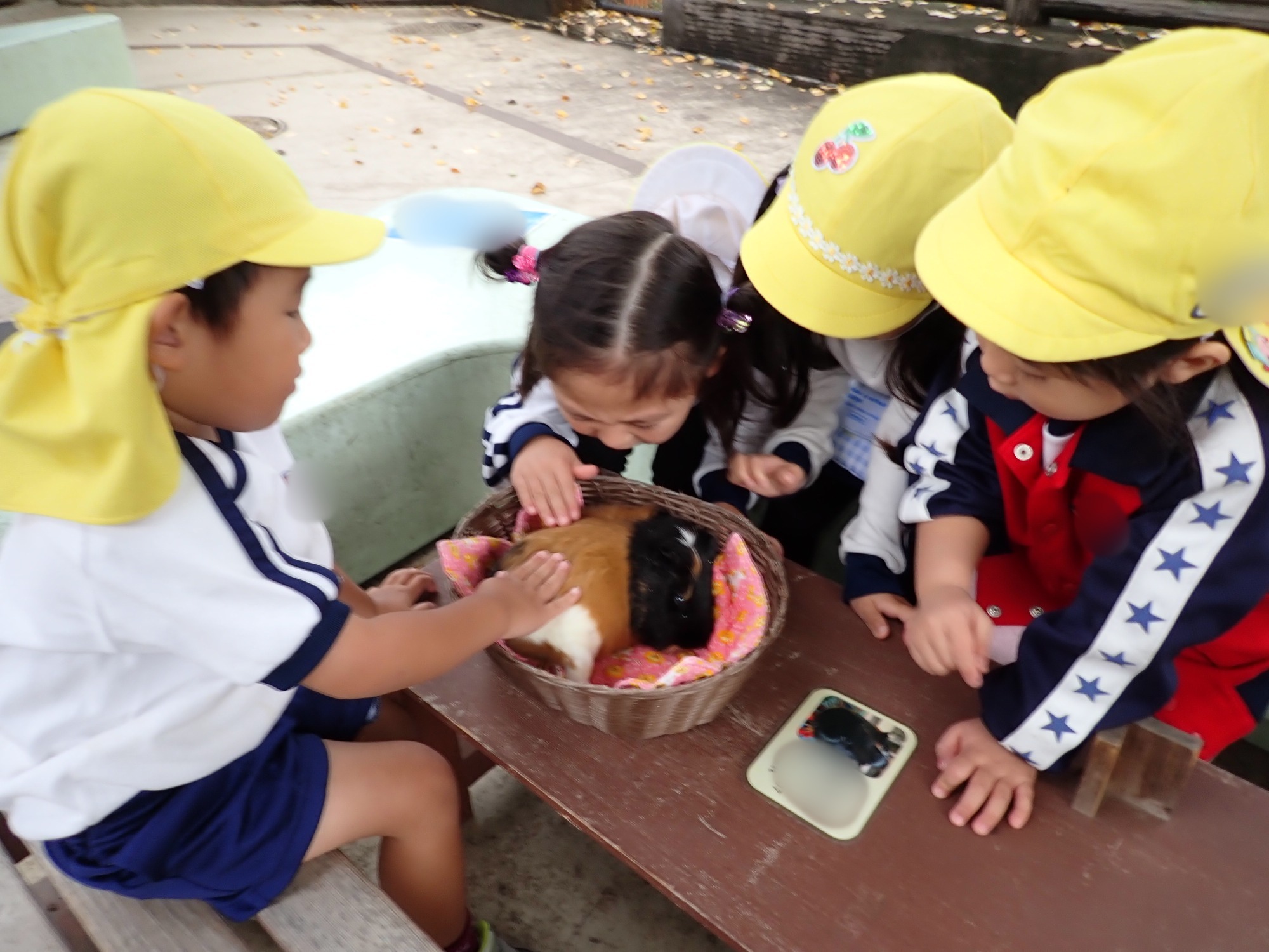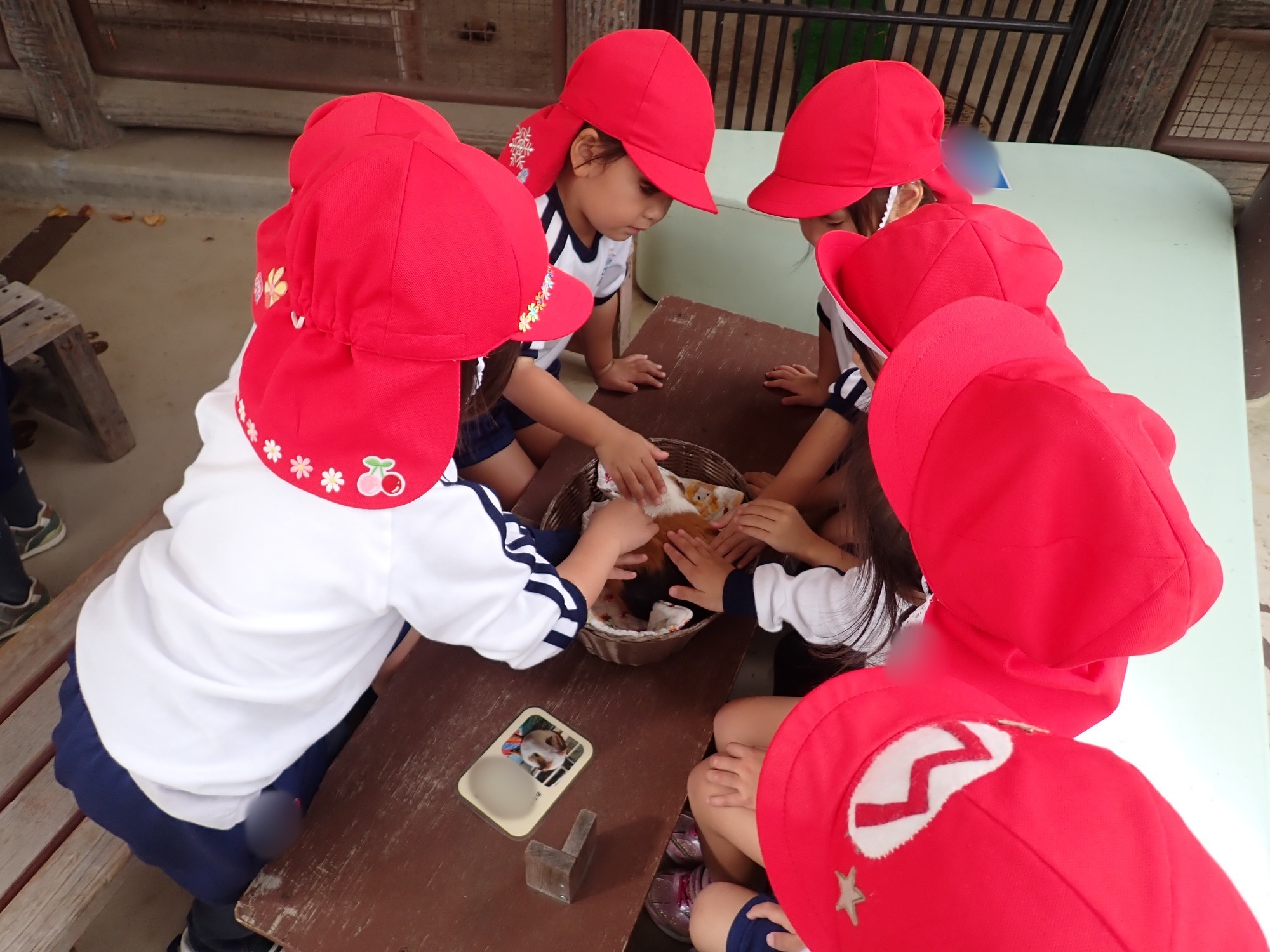 小動物に触れ、青空の下でお弁当を食べたり、自然の中でたくさんあそびました。