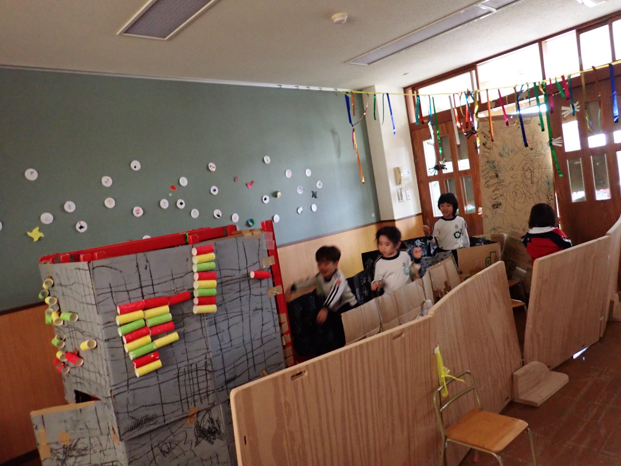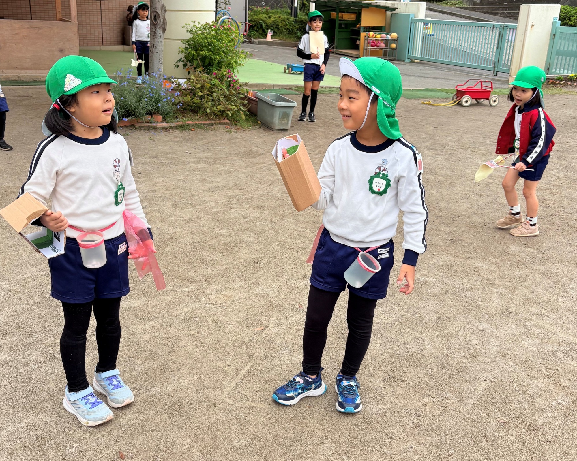 次の日、バードショーを再現。鳥を作り、トレーナーになりきってショーを進めたり、自分たちで考えたペンギンショーもその内始まったりと遠足の余韻を楽しんでいました。