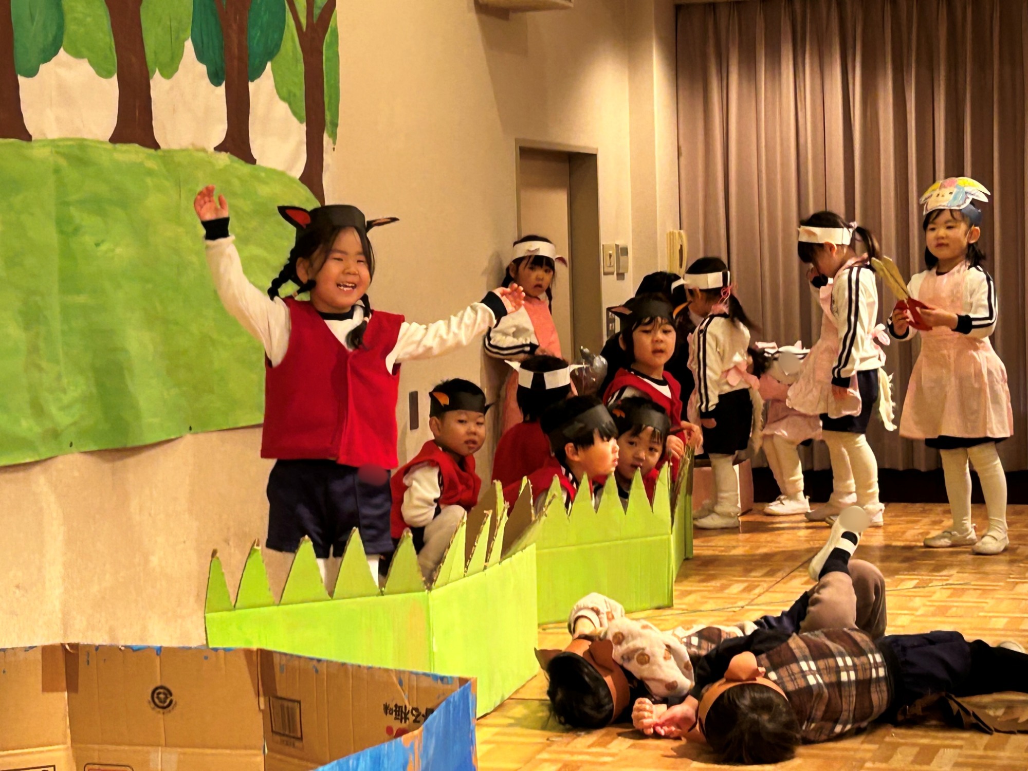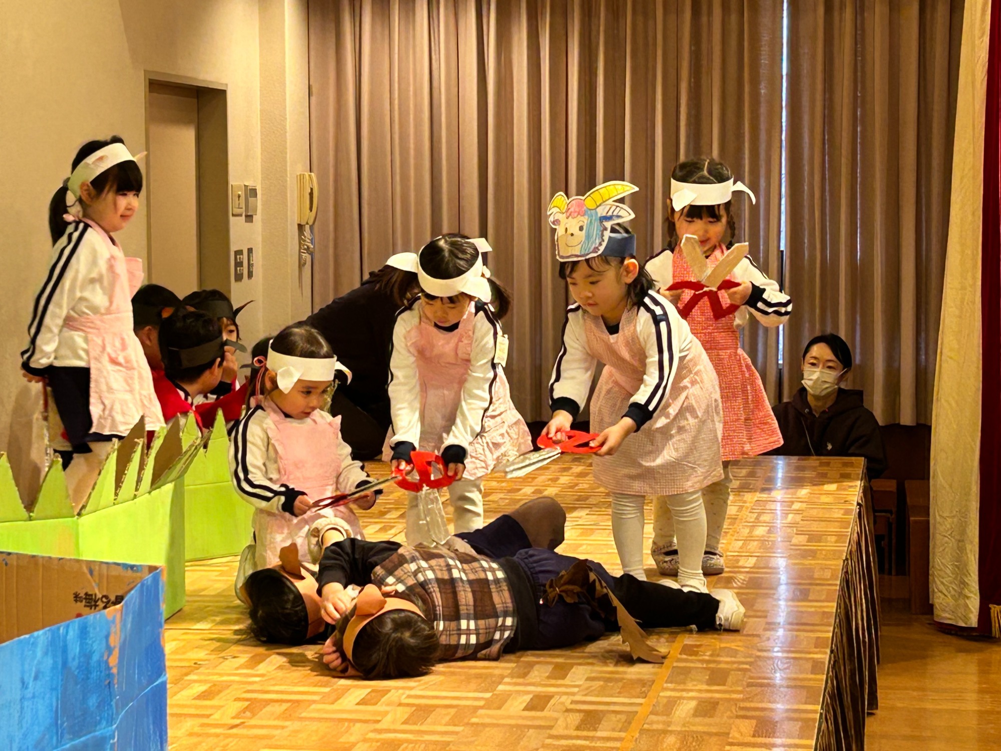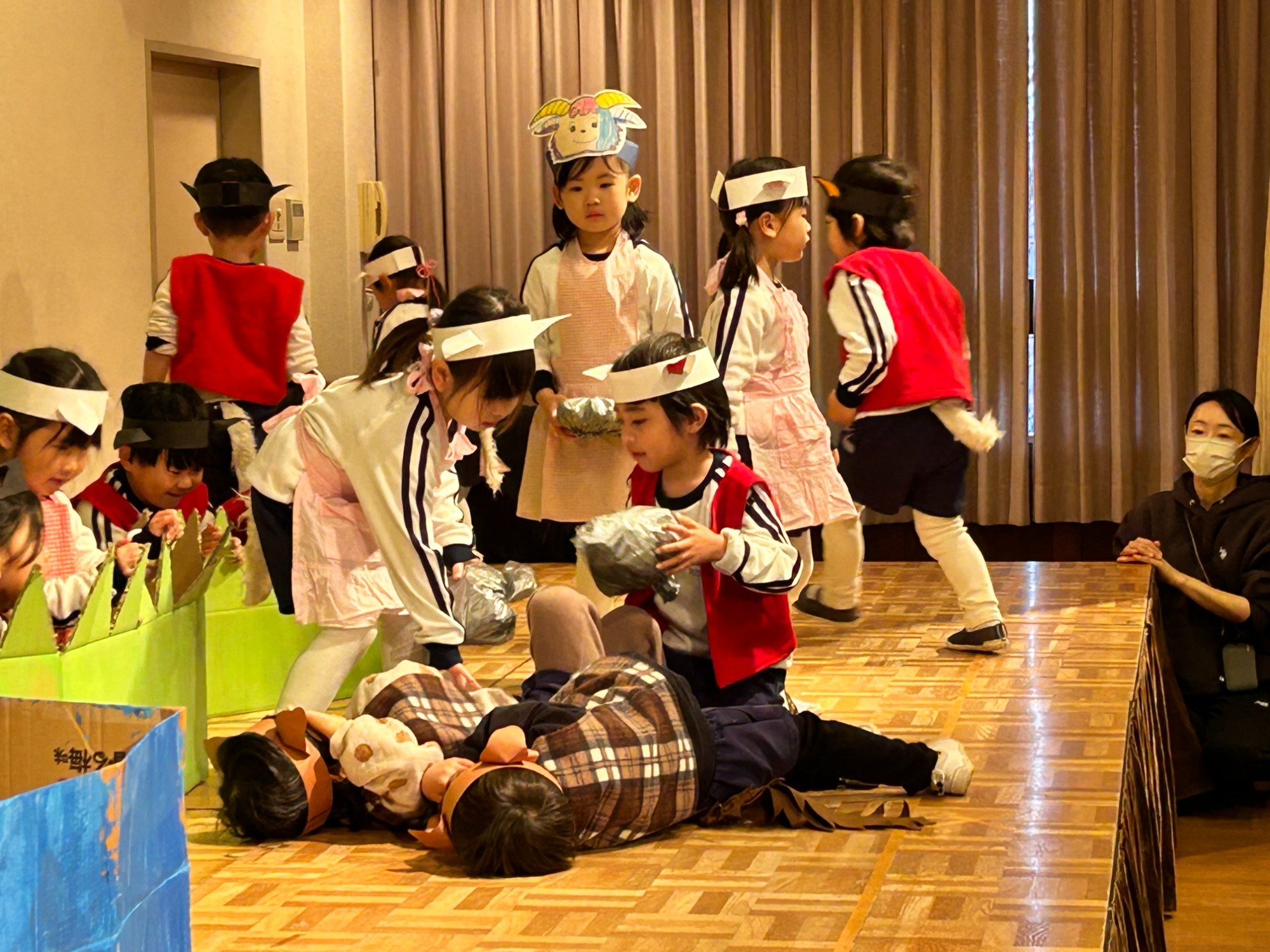 クラスごと大好きなお話しから好きな役になって劇ごっこをしました。