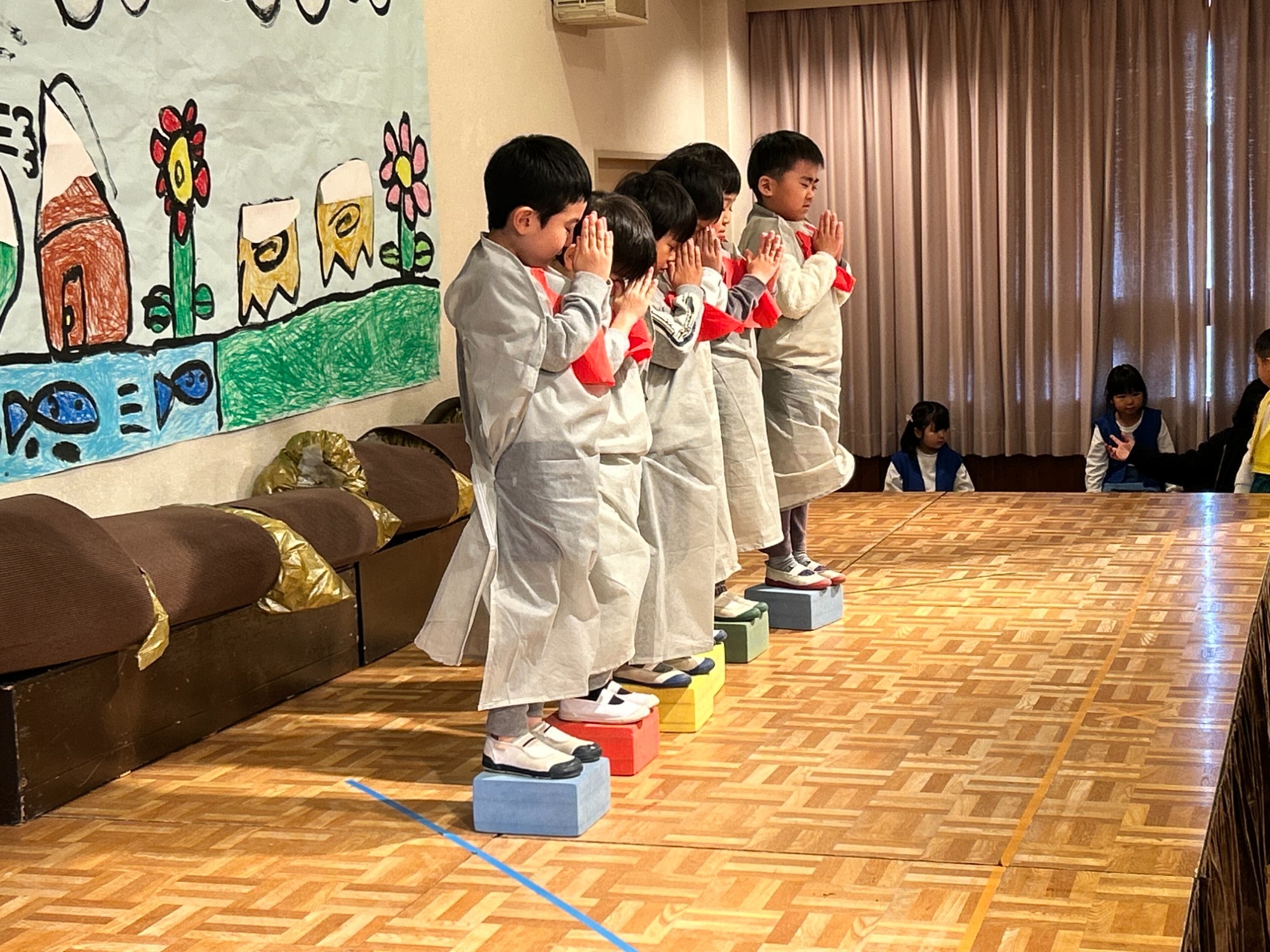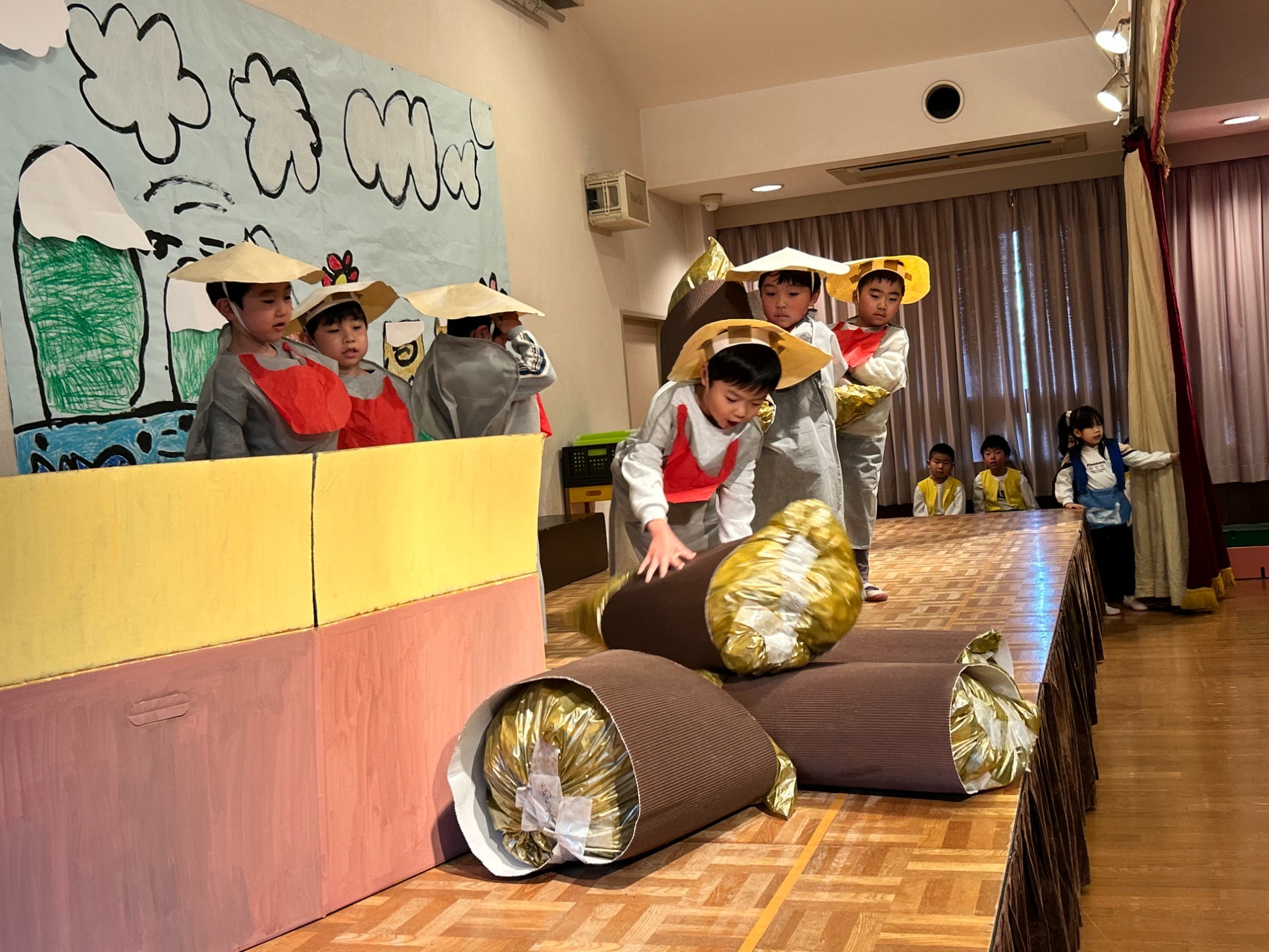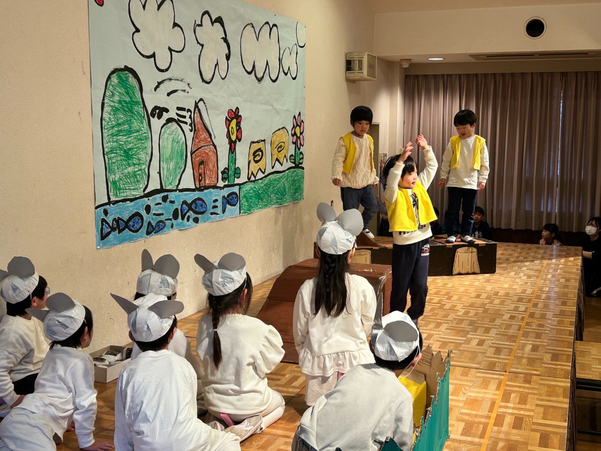 クラスごと大好きなお話しから好きな役になって劇ごっこをしました。