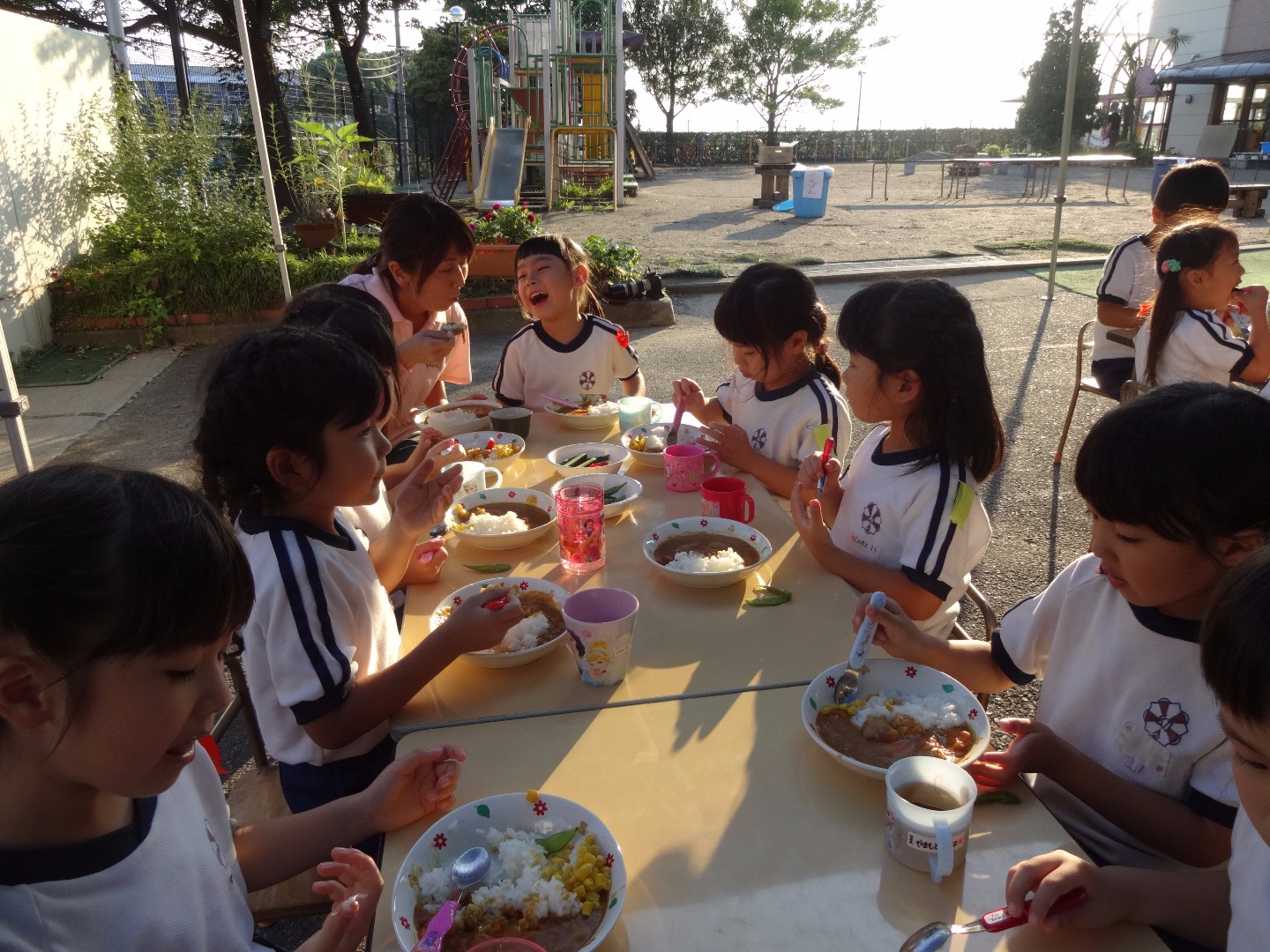 運動会ごっこの後ふかし芋を食べました。外でかまどを作りせいろで蒸しました、ペロリと食べあっという間になくなりました。