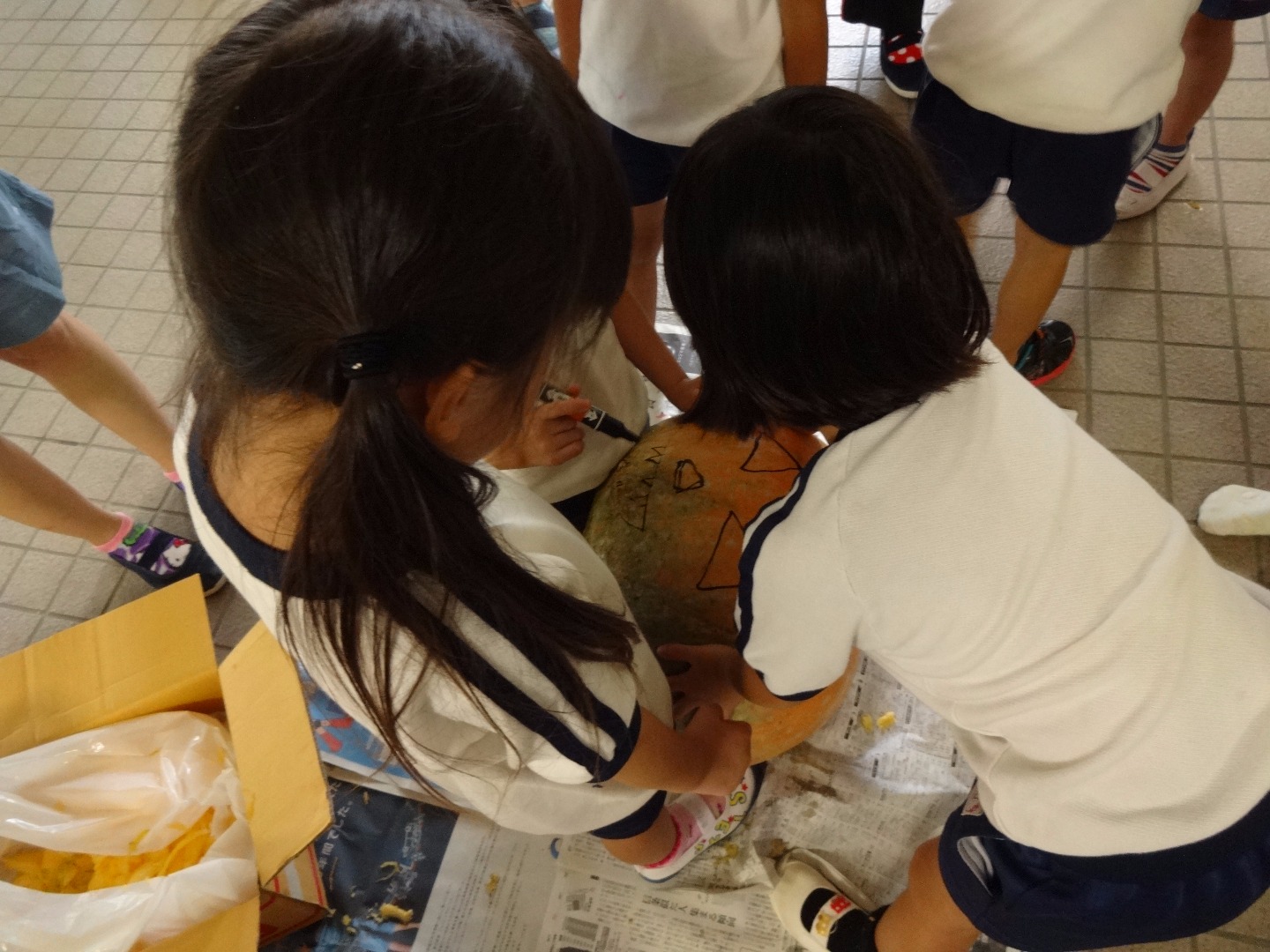 とうとうくりぬかれ、かぼちゃのランプになりました。